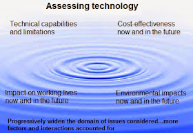 Technology - best to take a broad view and account for interactions. Applying knowledge to useful ends is a pretty good definition of technology. Contrary to what some would have you believe most advocates for a sustainable society are not generally anti-technology, as their arguments for modern wind turbines, photovoltaic panels, efficiency and pollution control systems and electric trams demonstrates. Reports on pioneering heat recycling and on new wave and tide simulator or on how robots could reduce animal tests provide further evidence and examples. An appropriate process of technological assessment (see image) should be applied however.